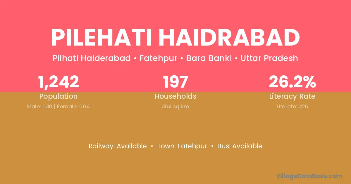 Pilehati Haidrabad village has a total population of 1,242 people, of which 638 are males and 604 are females.