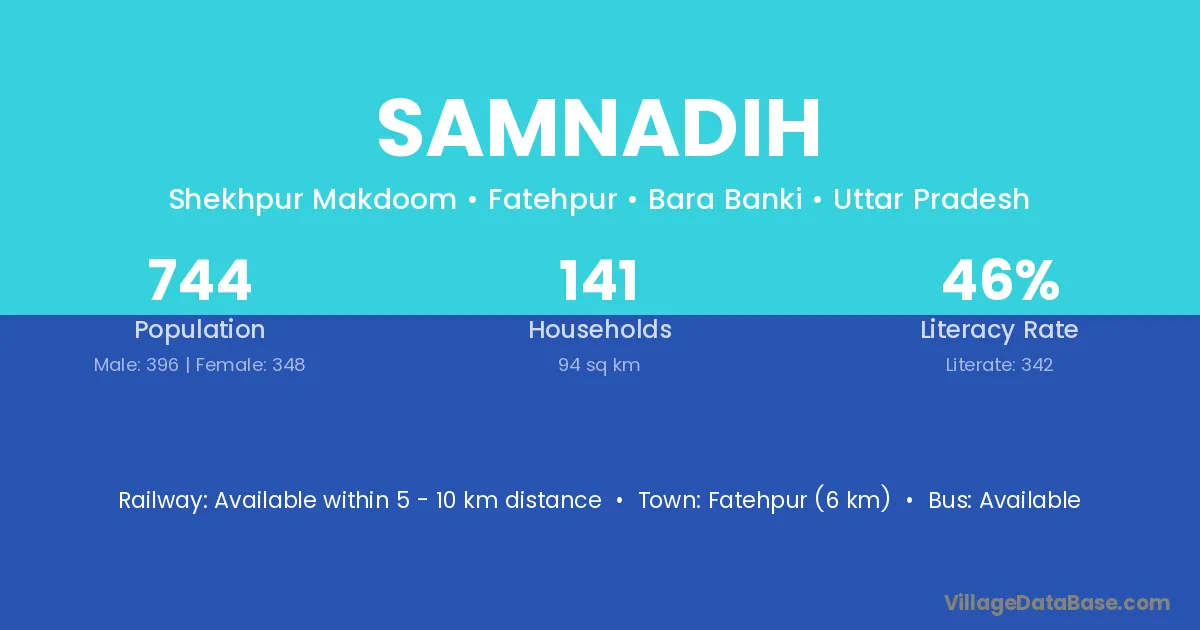 Fatehpur (6 km) is the nearest town to Samnadih village for major economic activities and is located approximately 6 km away.