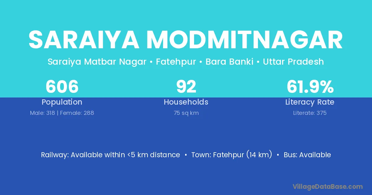 Fatehpur (14 km) is the nearest town to Saraiya Modmitnagar village for major economic activities and is located approximately 14 km away.