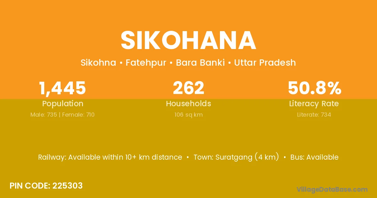 Suratgang (4 km) is the nearest town to Sikohana village for major economic activities and is located approximately 4 km away.