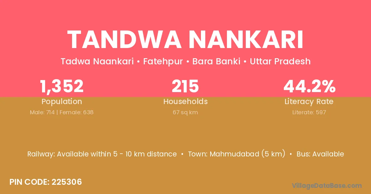 Mahmudabad (5 km) is the nearest town to Tandwa Nankari village for major economic activities and is located approximately 5 km away.