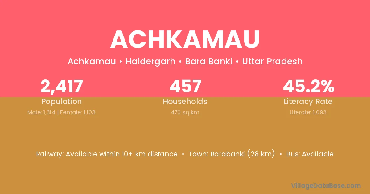 Barabanki (28 km) is the nearest town to Achkamau village for major economic activities and is located approximately 28 km away.