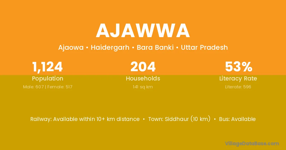 Siddhaur (10 km) is the nearest town to Ajawwa village for major economic activities and is located approximately 10 km away.