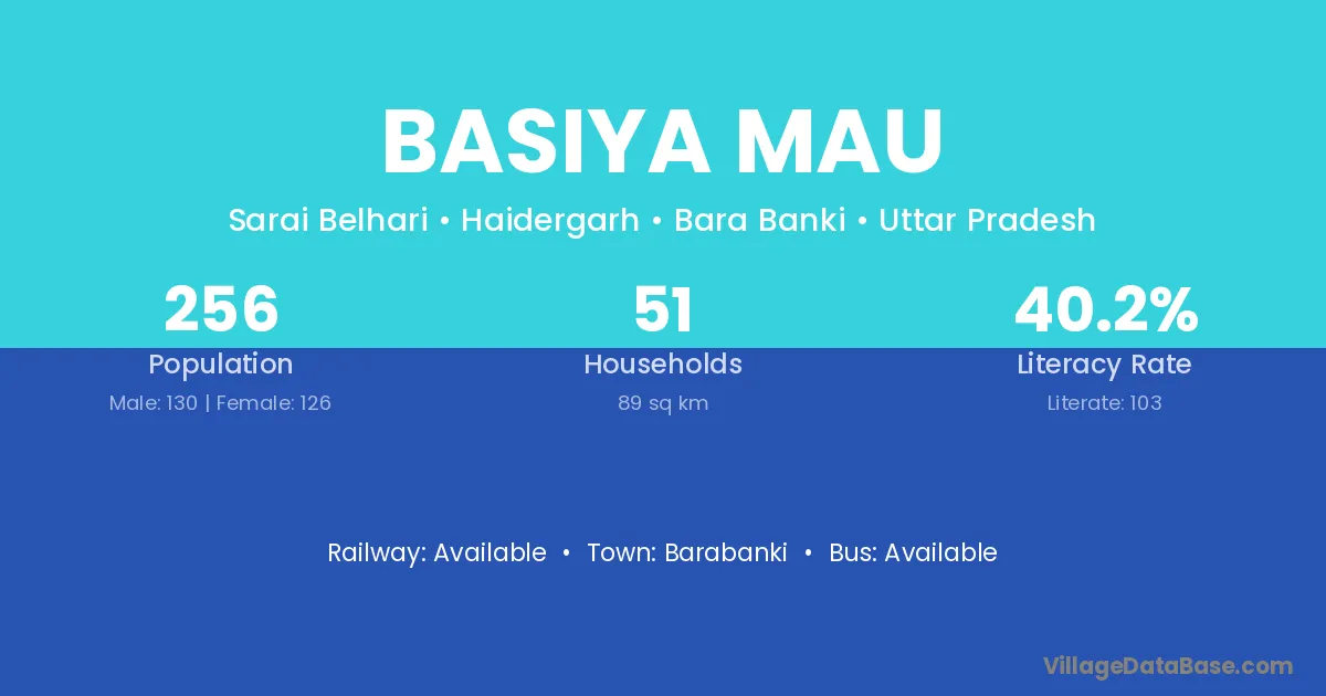 Basiya Mau village has a total population of 256 people, of which 130 are males and 126 are females.