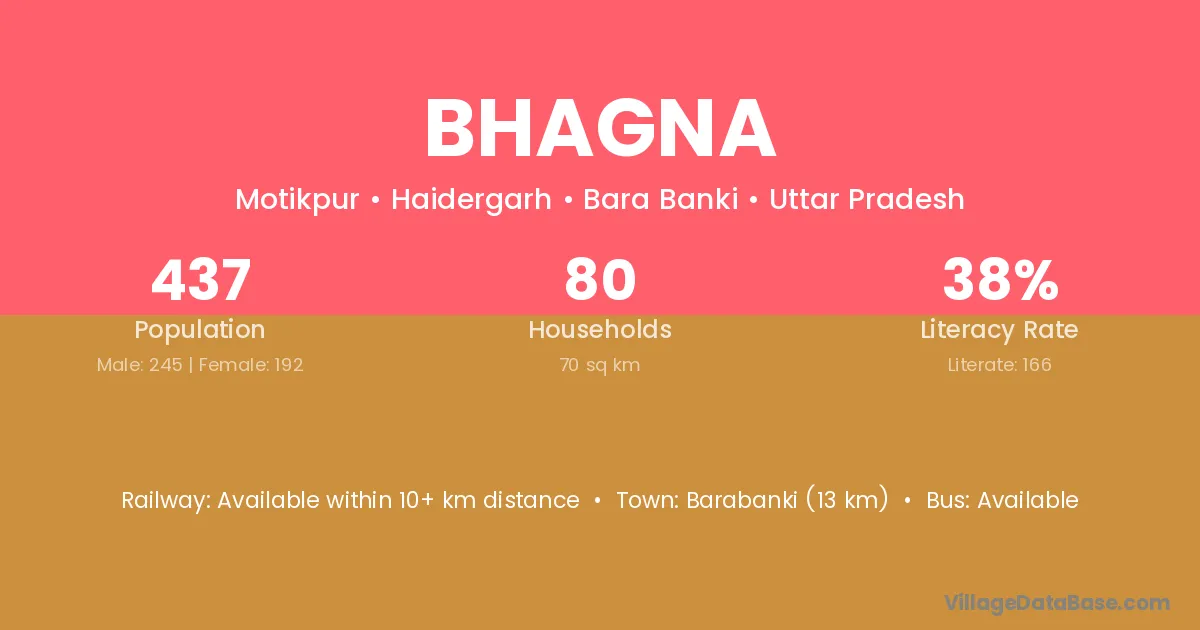 Barabanki (13 km) is the nearest town to Bhagna village for major economic activities and is located approximately 13 km away.
