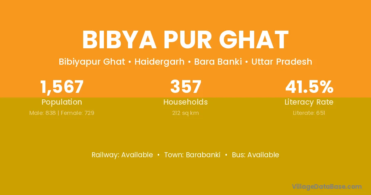 Bibya Pur Ghat village has a total population of 1,567 people, of which 838 are males and 729 are females.
