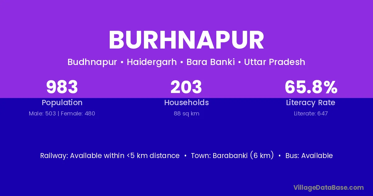 Barabanki (6 km) is the nearest town to Burhnapur village for major economic activities and is located approximately 6 km away.