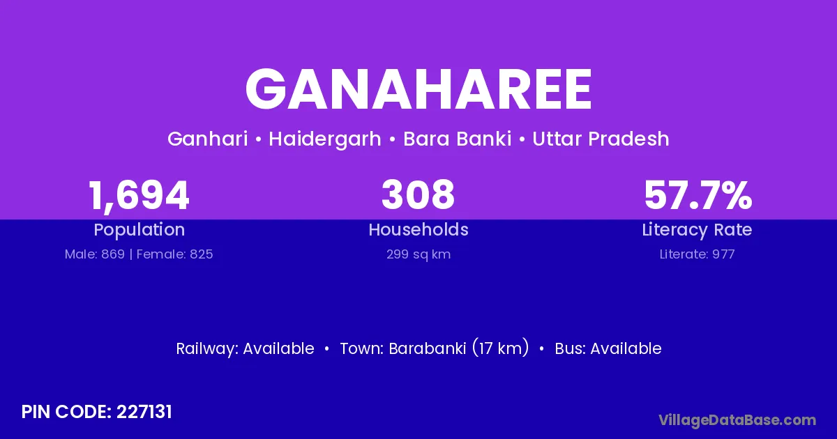 Barabanki (17 km) is the nearest town to Ganaharee village for major economic activities and is located approximately 17 km away.