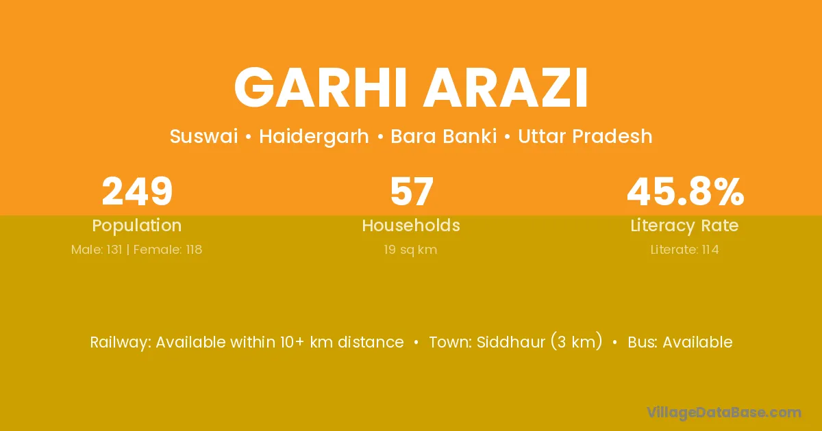 Siddhaur (3 km) is the nearest town to Garhi Arazi village for major economic activities and is located approximately 3 km away.