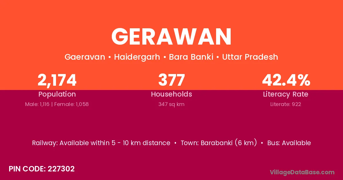 Barabanki (6 km) is the nearest town to Gerawan village for major economic activities and is located approximately 6 km away.