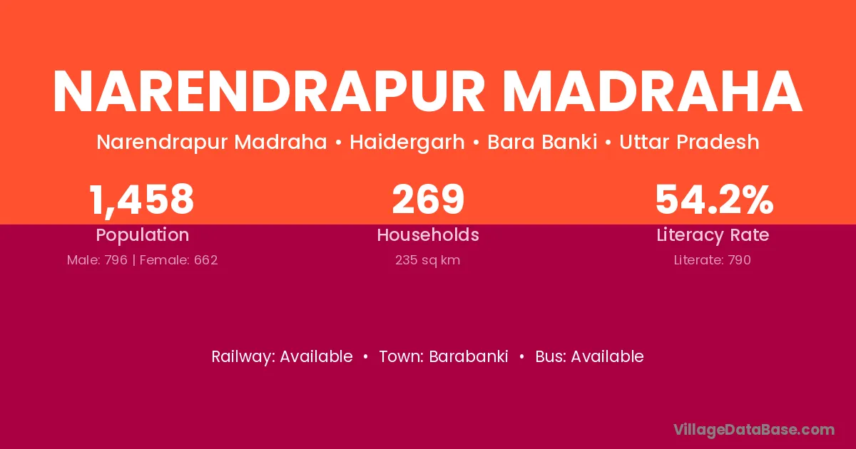 Narendrapur Madraha village has a total population of 1,458 people, of which 796 are males and 662 are females.