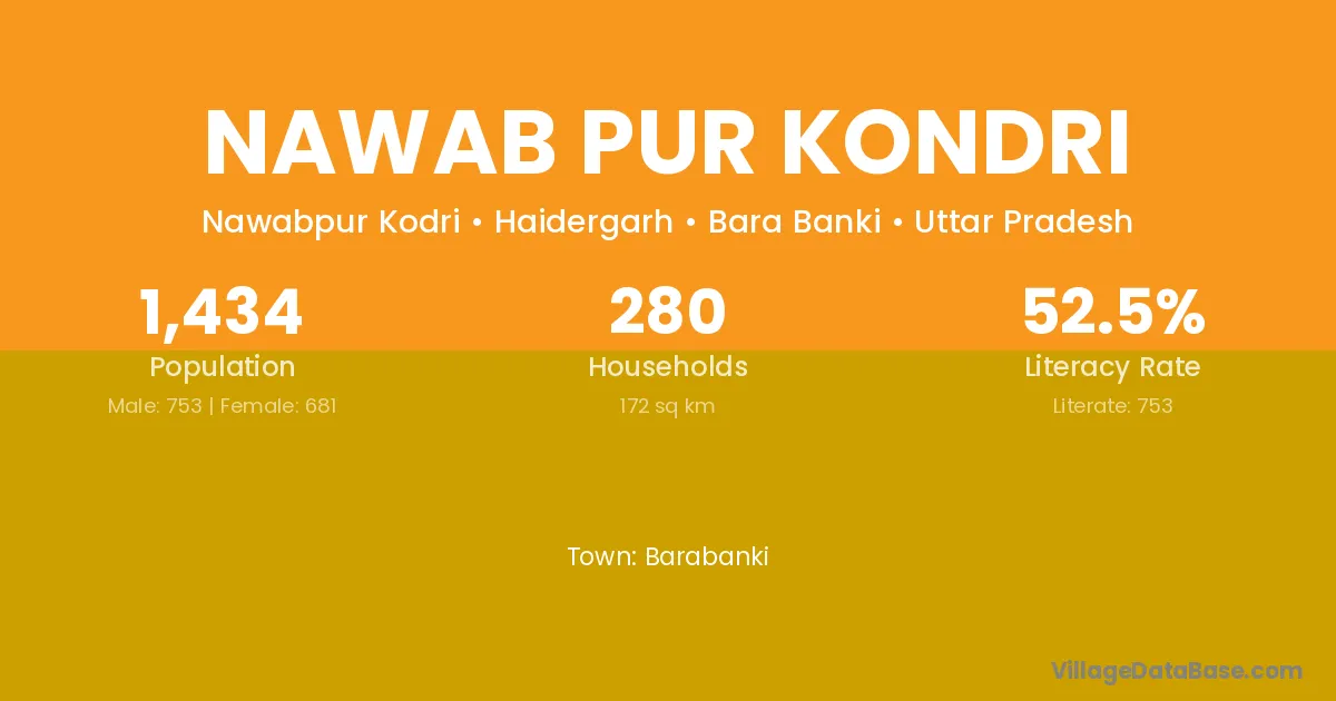 Nawab Pur Kondri village has a total population of 1,434 people, of which 753 are males and 681 are females.