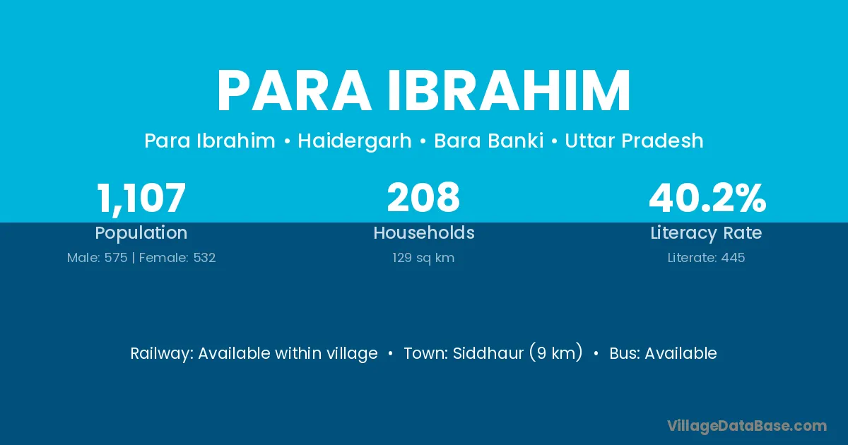 Siddhaur (9 km) is the nearest town to Para Ibrahim village for major economic activities and is located approximately 9 km away.