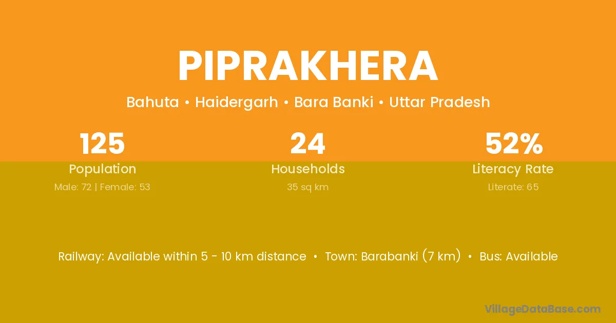 Barabanki (7 km) is the nearest town to Piprakhera village for major economic activities and is located approximately 7 km away.