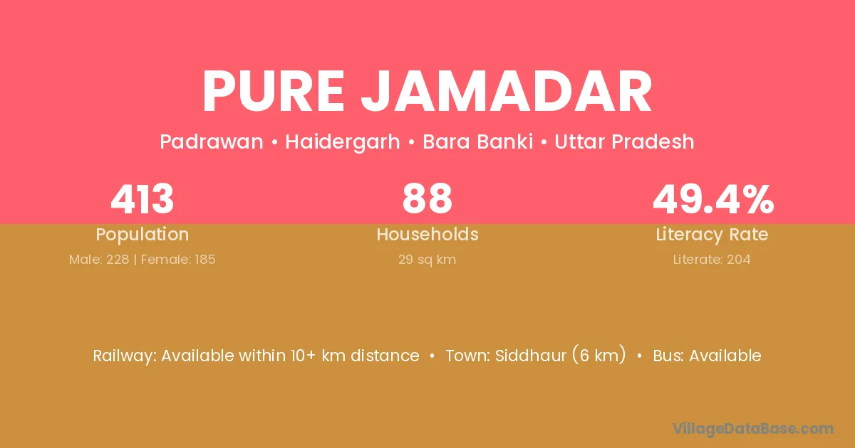 Pure Jamadar village has a total population of 413 people, of which 228 are males and 185 are females.