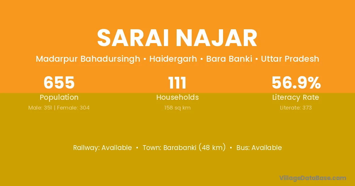 Barabanki (48 km) is the nearest town to Sarai Najar village for major economic activities and is located approximately 48 km away.