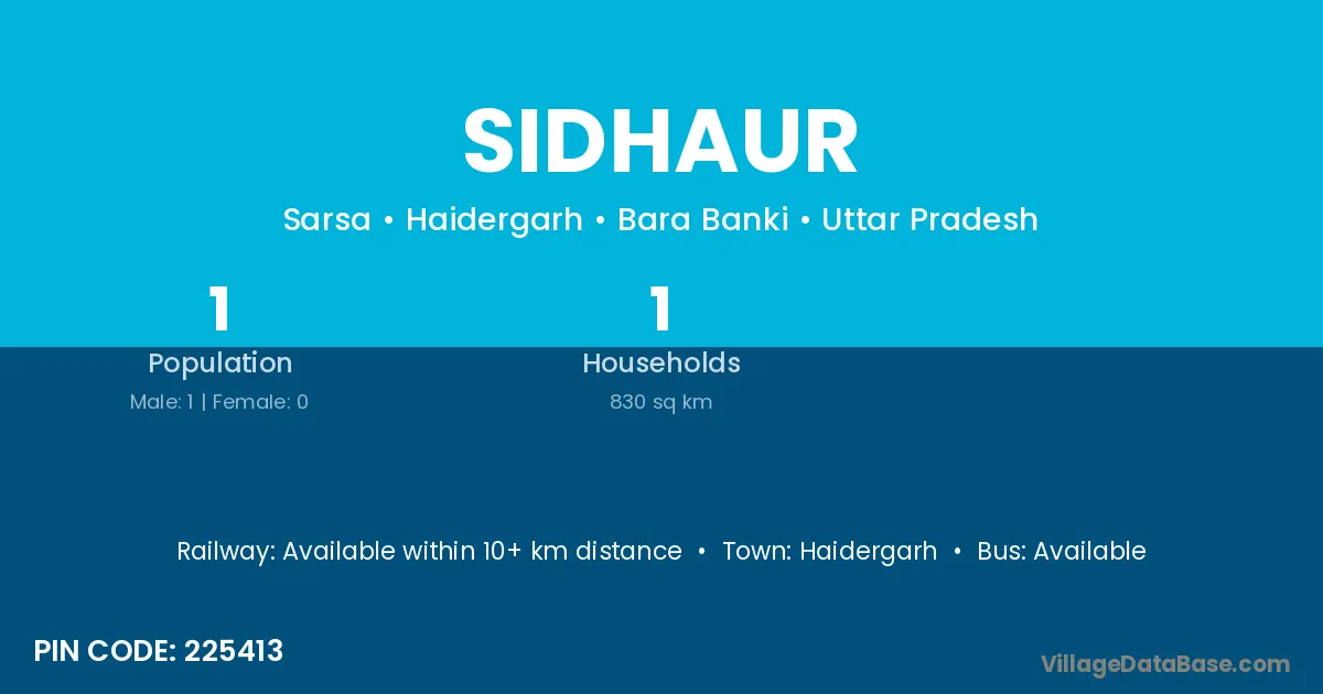 Sidhaur village has a total population of 1 people, of which 1 are males and 0 are females.