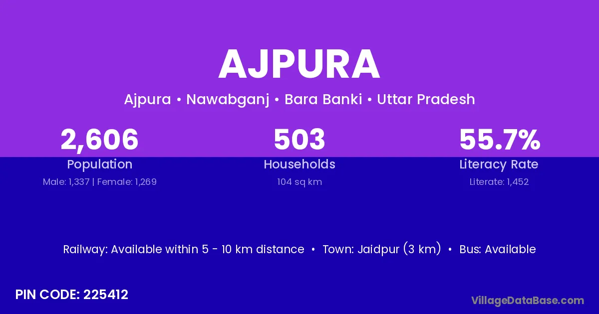 Ajpura village has a total population of 2,606 people, of which 1,337 are males and 1,269 are females.