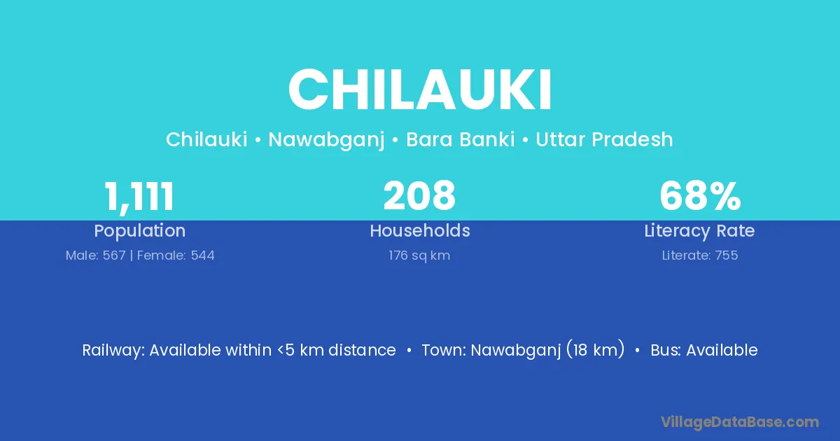 Chilauki village has a total population of 1,111 people, of which 567 are males and 544 are females.