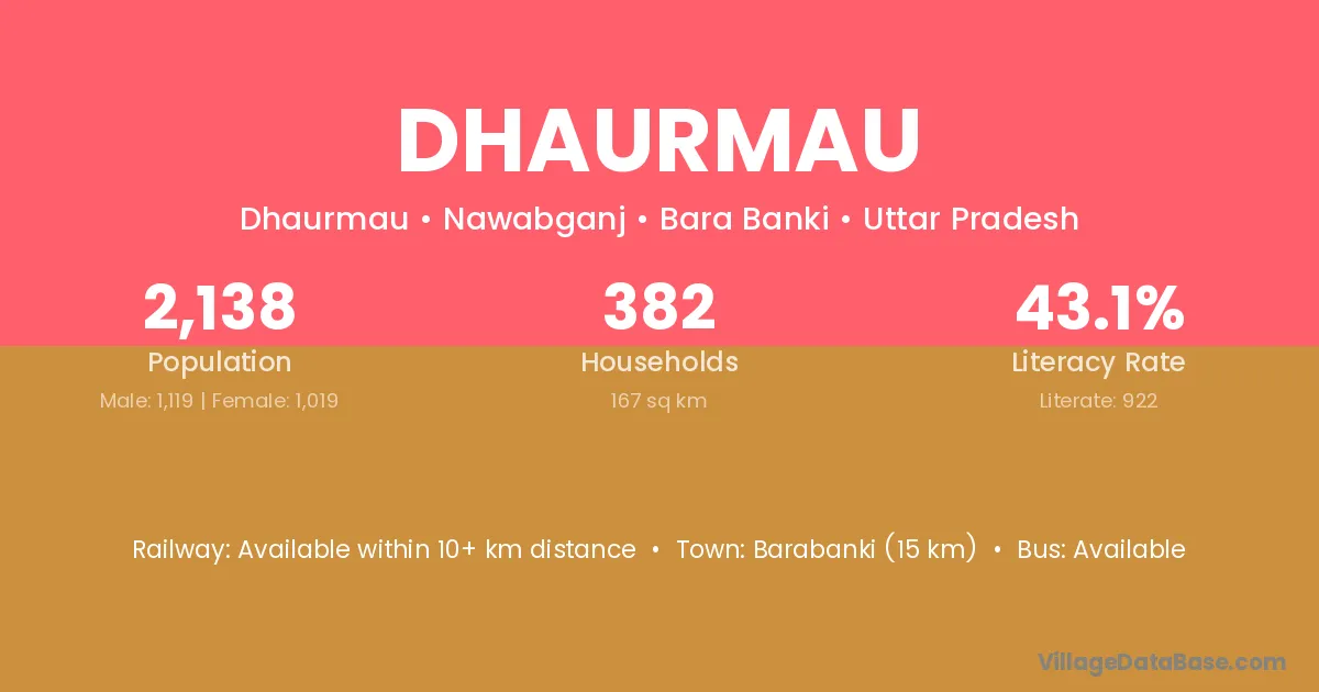 Barabanki (15 km) is the nearest town to Dhaurmau village for major economic activities and is located approximately 15 km away.