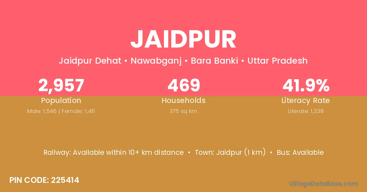 Jaidpur (1 km) is the nearest town to Jaidpur village for major economic activities and is located approximately 1 km away.