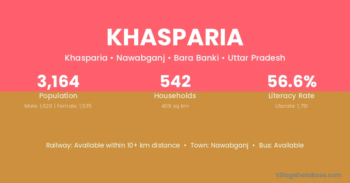 Khasparia village has a total population of 3,164 people, of which 1,629 are males and 1,535 are females.