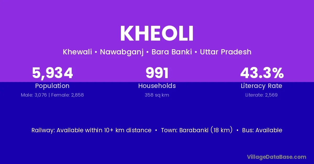 Barabanki (18 km) is the nearest town to Kheoli village for major economic activities and is located approximately 18 km away.
