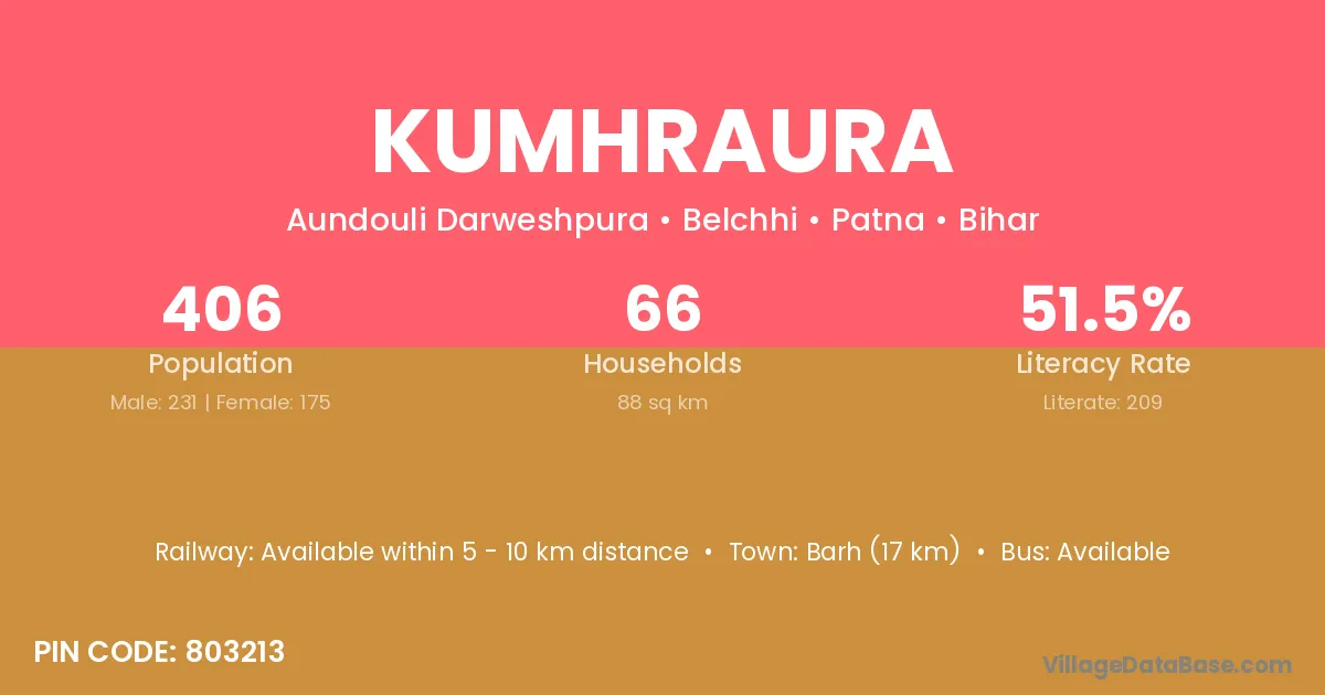 Kumhraura village has a total population of 1,003 people, of which 527 are males and 476 are females.