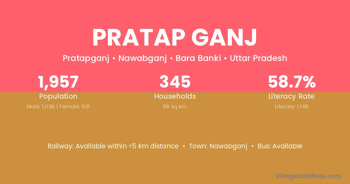 Pratap Ganj village has a total population of 1,957 people, of which 1,026 are males and 931 are females.
