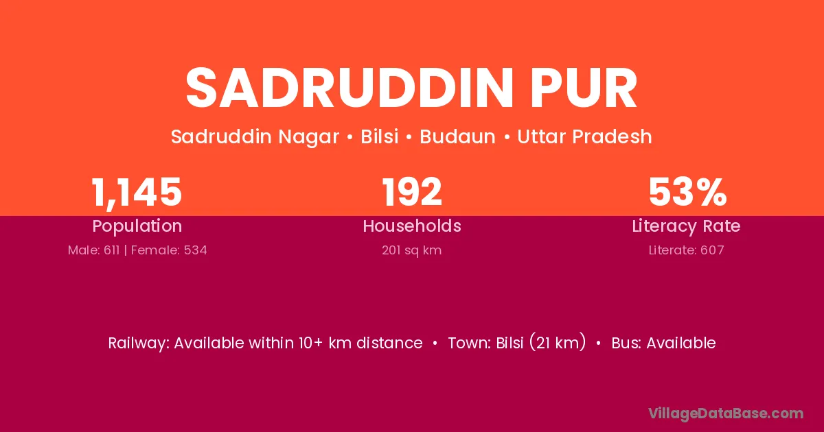 The literacy rate of Sadruddin Pur village is 55.27%. Male literacy stands at 63.87% and female literacy at 46.70%.
