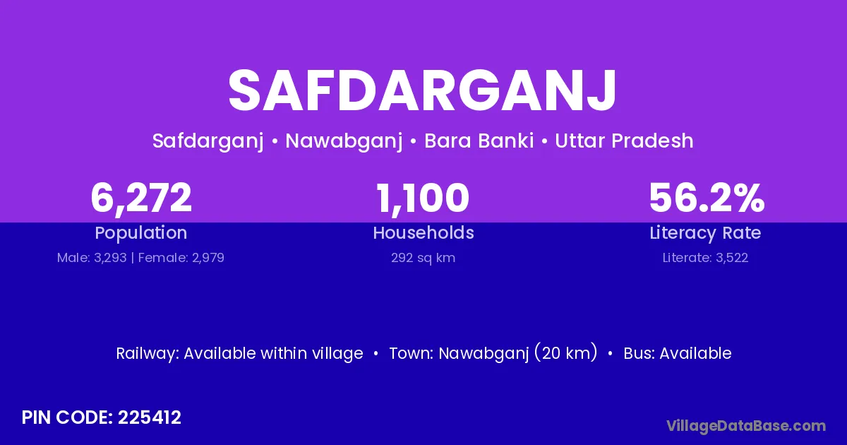 Nawabganj (20 km) is the nearest town to Safdarganj village for major economic activities and is located approximately 20 km away.