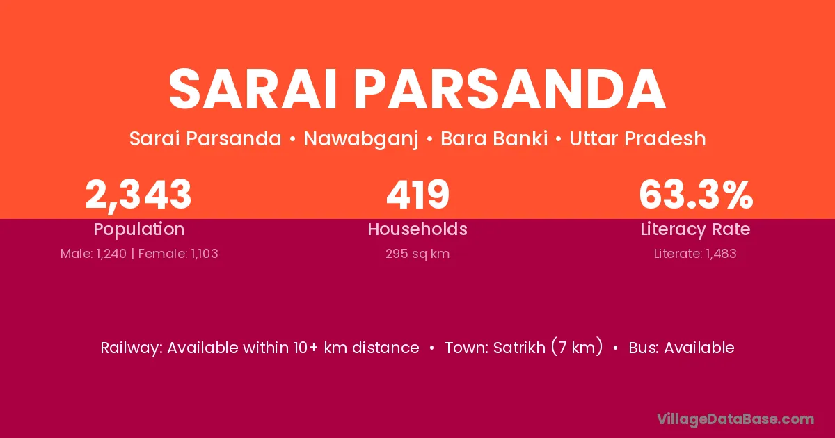 Satrikh (7 km) is the nearest town to Sarai Parsanda village for major economic activities and is located approximately 7 km away.