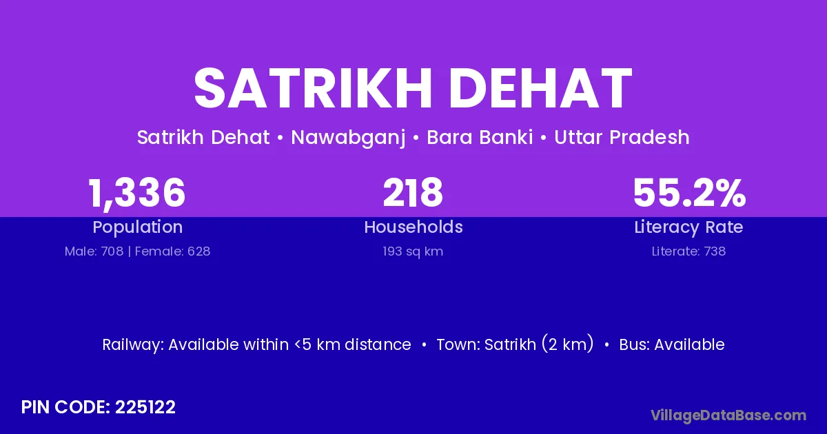 Satrikh (2 km) is the nearest town to Satrikh Dehat village for major economic activities and is located approximately 2 km away.