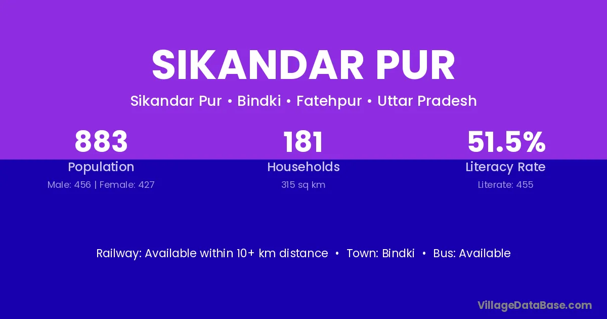 Sikandar Pur village has a total population of 1,685 people, of which 887 are males and 798 are females.