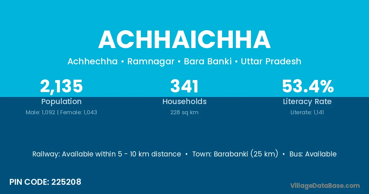 Barabanki (25 km) is the nearest town to Achhaichha village for major economic activities and is located approximately 25 km away.