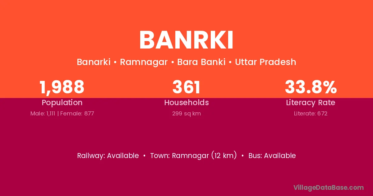 Ramnagar (12 km) is the nearest town to Banrki village for major economic activities and is located approximately 12 km away.