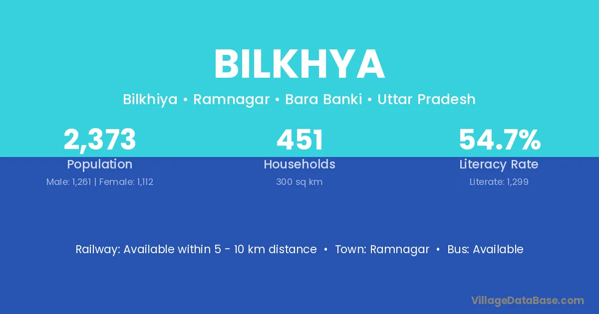 Bilkhya village has a total population of 2,373 people, of which 1,261 are males and 1,112 are females.