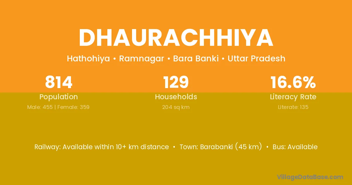 Barabanki (45 km) is the nearest town to Dhaurachhiya village for major economic activities and is located approximately 45 km away.