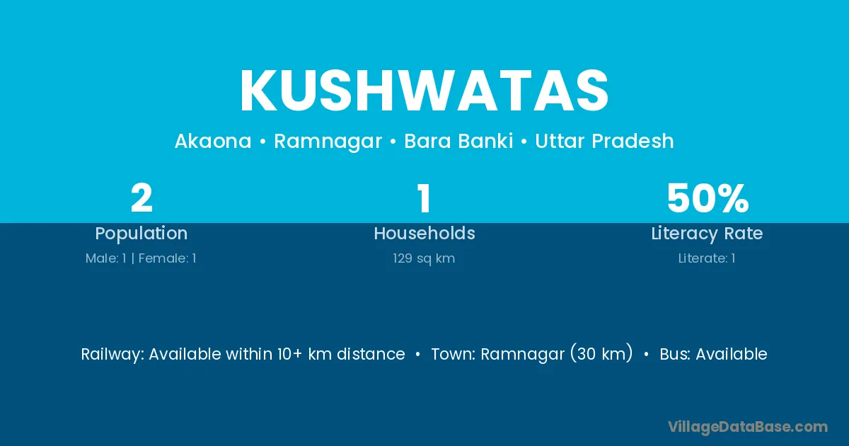 Kushwatas village has a total population of 2 people, of which 1 are males and 1 are females.
