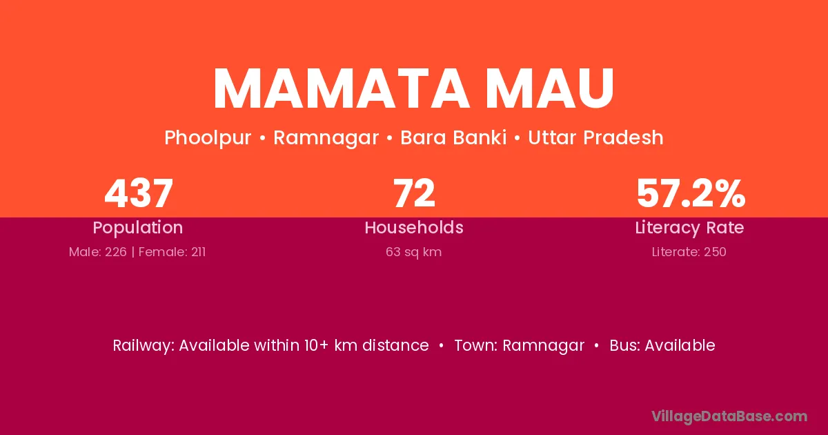 Mamata Mau village has a total population of 437 people, of which 226 are males and 211 are females.