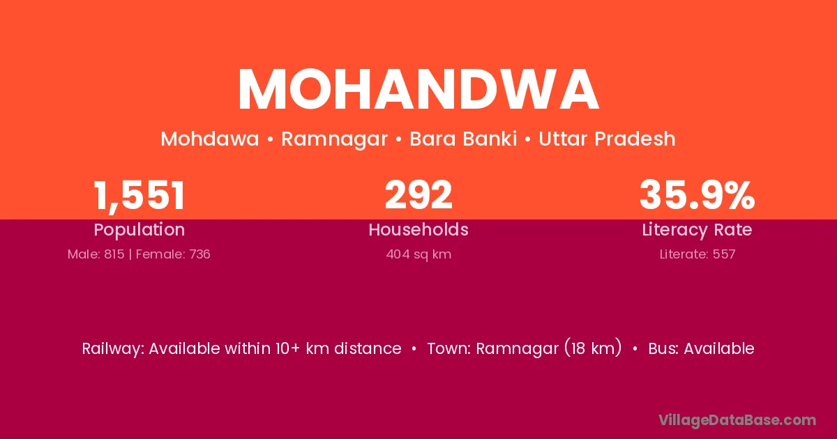 Ramnagar (18 km) is the nearest town to Mohandwa village for major economic activities and is located approximately 18 km away.