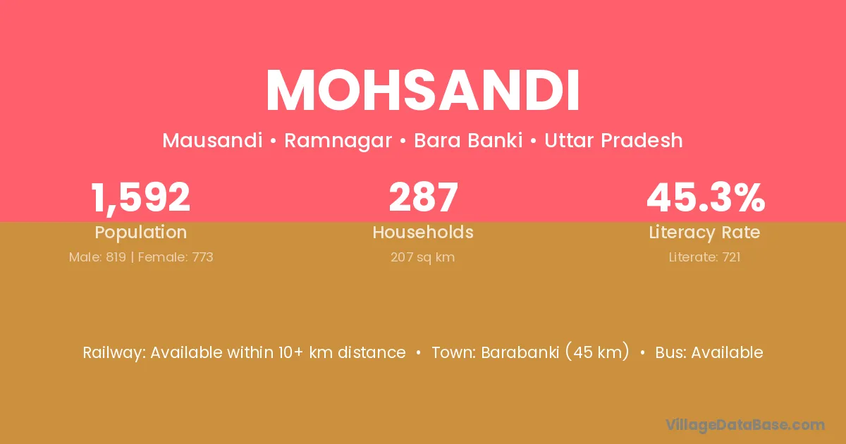 Barabanki (45 km) is the nearest town to Mohsandi village for major economic activities and is located approximately 45 km away.