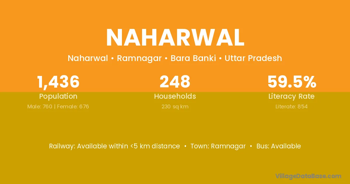 Naharwal village has a total population of 1,436 people, of which 760 are males and 676 are females.