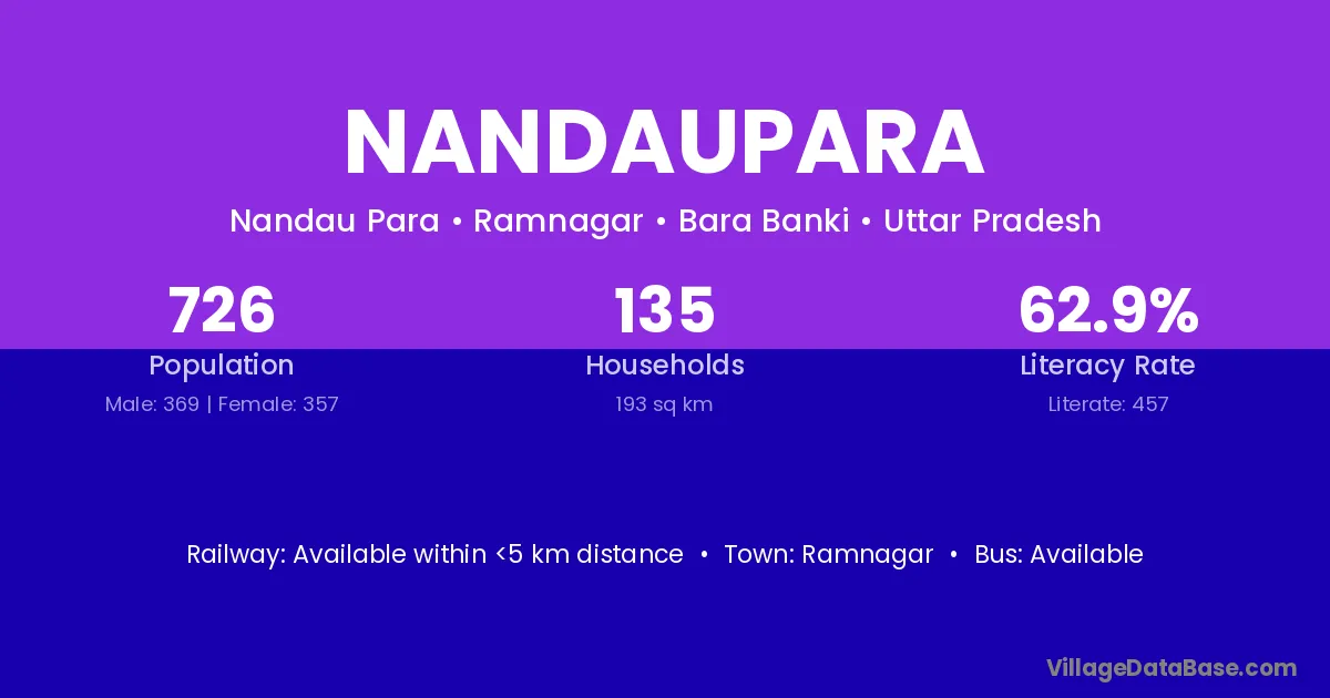 Nandaupara village has a total population of 726 people, of which 369 are males and 357 are females.
