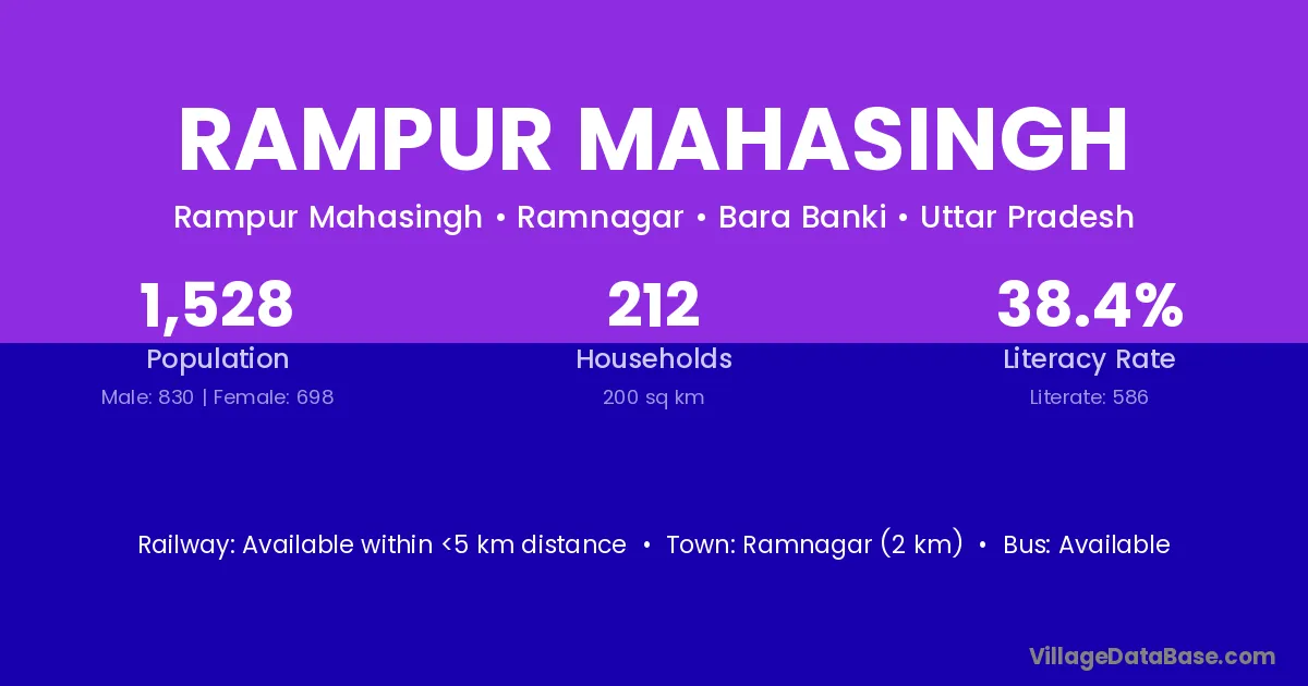 Ramnagar (2 km) is the nearest town to Rampur Mahasingh village for major economic activities and is located approximately 2 km away.