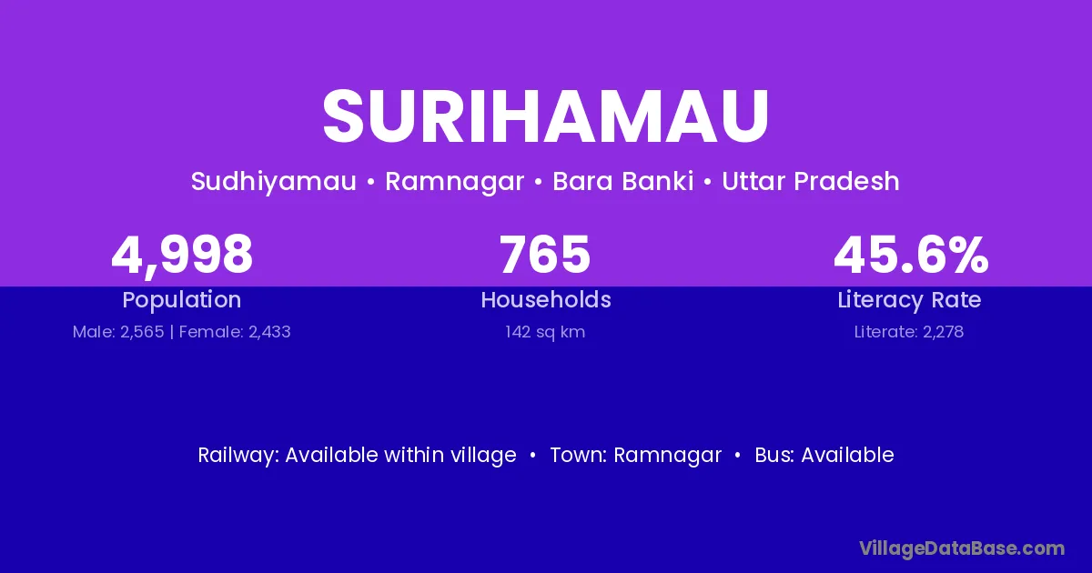 Surihamau village has a total population of 4,998 people, of which 2,565 are males and 2,433 are females.