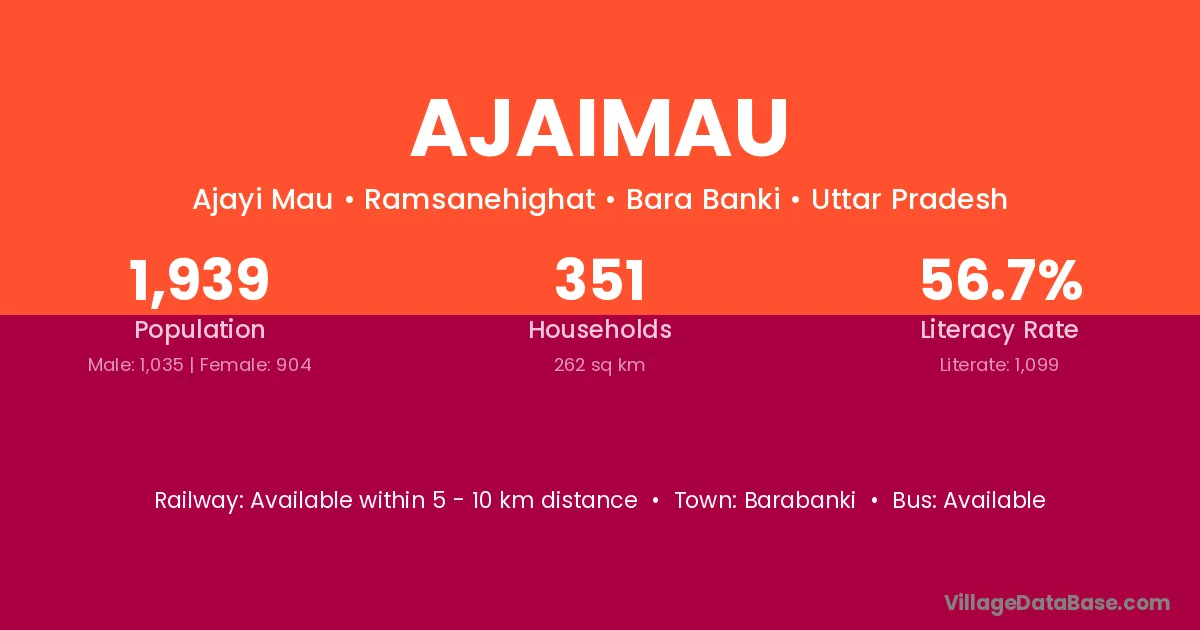 Ajaimau village has a total population of 1,939 people, of which 1,035 are males and 904 are females.
