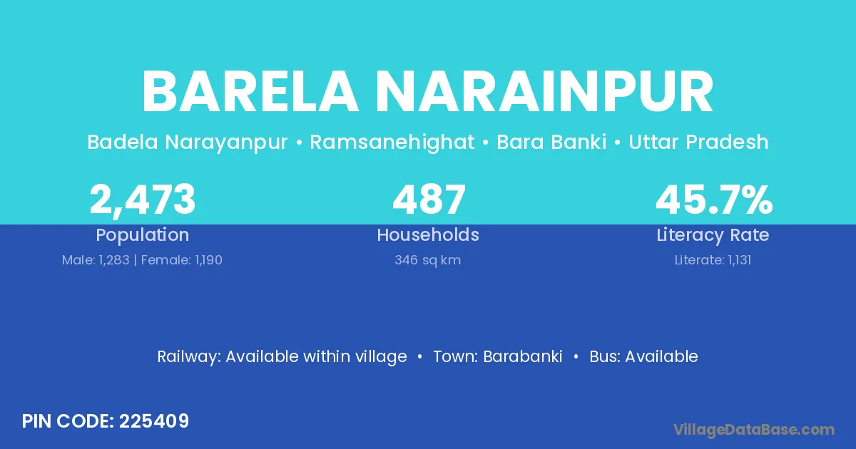 Barabanki is the nearest town to Barela Narainpur village for major economic activities