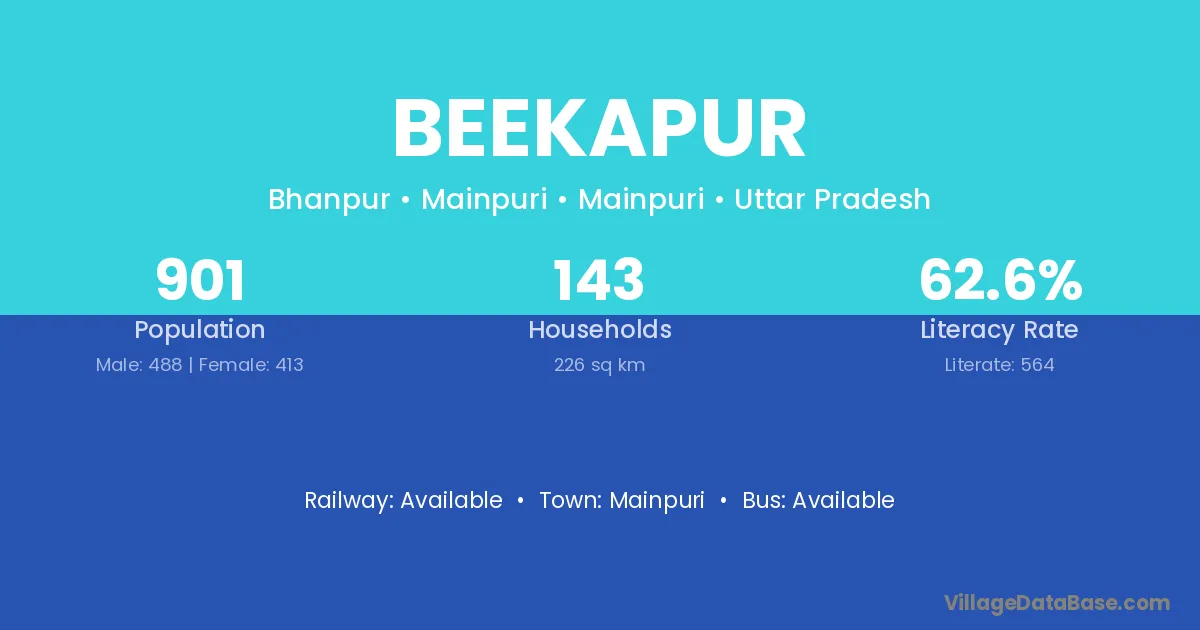 Dariyabad (4 km) is the nearest town to Beekapur village for major economic activities and is located approximately 4 km away.