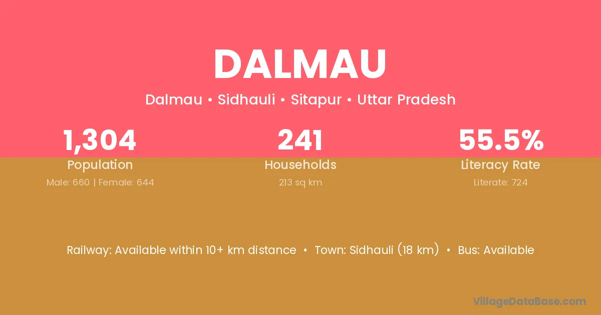 Barabanki (15 km) is the nearest town to Dalmau village for major economic activities and is located approximately 15 km away.